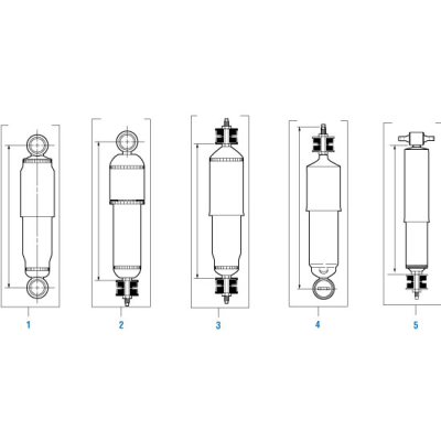 Select Freightliner® Applications : Universal. Shock Absorber (10.87" Extended) (7.88" Compressed) (Style 1 in Drawing). OEM Reference : Freightliner 18-37813-000.